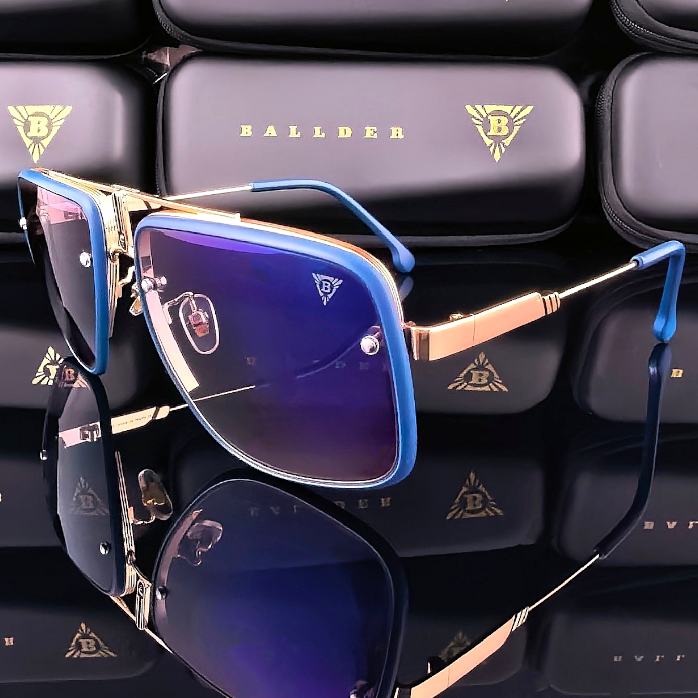 Слънчеви очила Ballder от супер луксозна серия с отличителна унисекс линия, златно синя рамка и сини стъкла. Това е модел, който впечатлява веднага с по-нестандартна форма, силно присъствие и ясно изразен луксозен характер. Линията стои много отличително на лицето, подчертава чертите и придава модерен завършек с ясно разпознаваема визия.