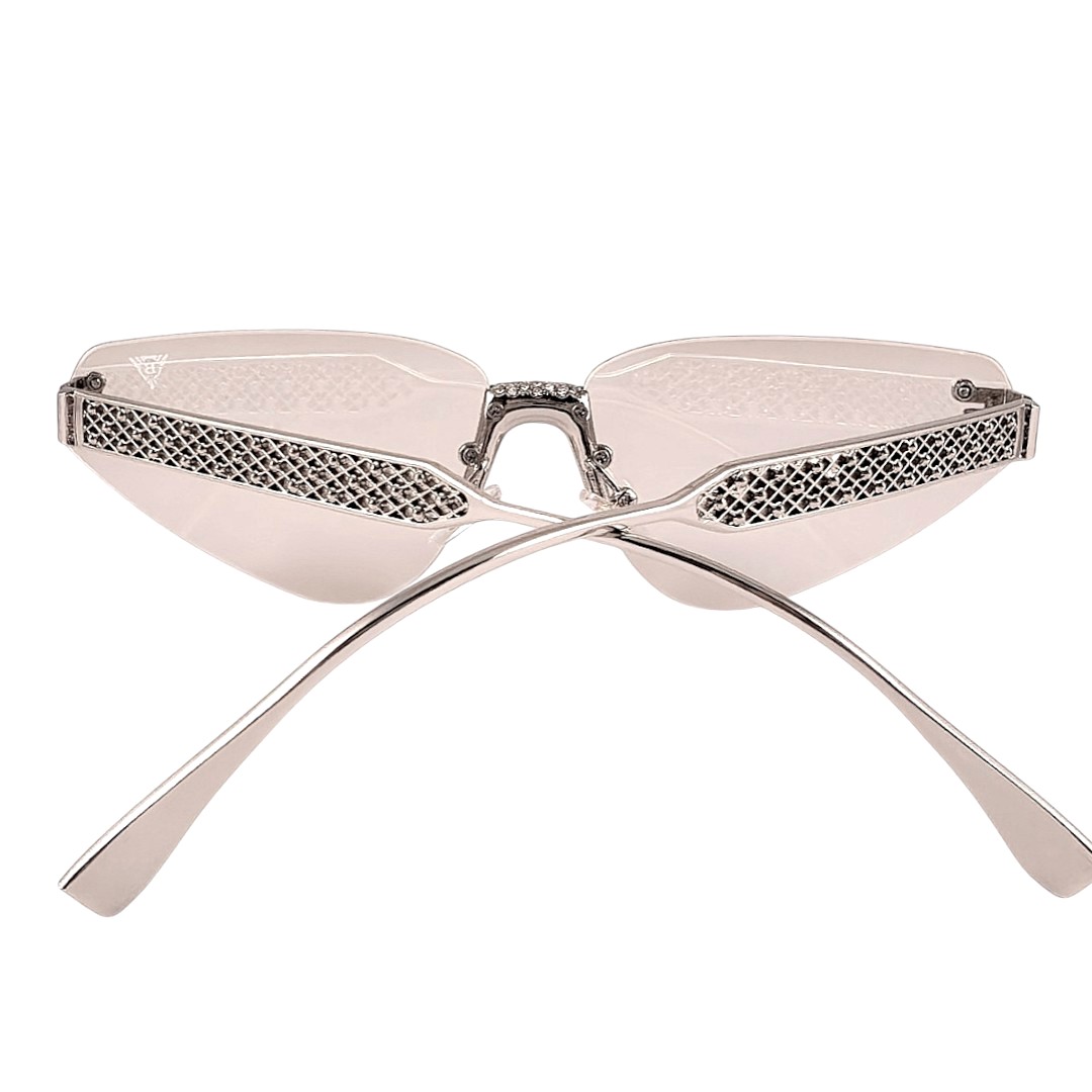 Слънчеви очила Ballder от супер луксозна серия с изразителна дамска линия, сребриста прозрачна рамка, сребърни огледални стъкла и циркониеви камъчета в централната част. Това е модел, който впечатлява веднага с фина, нежна и много скъпа визия. Формата стои елегантно, подчертава лицето и придава отличително присъствие с много специален завършек.
