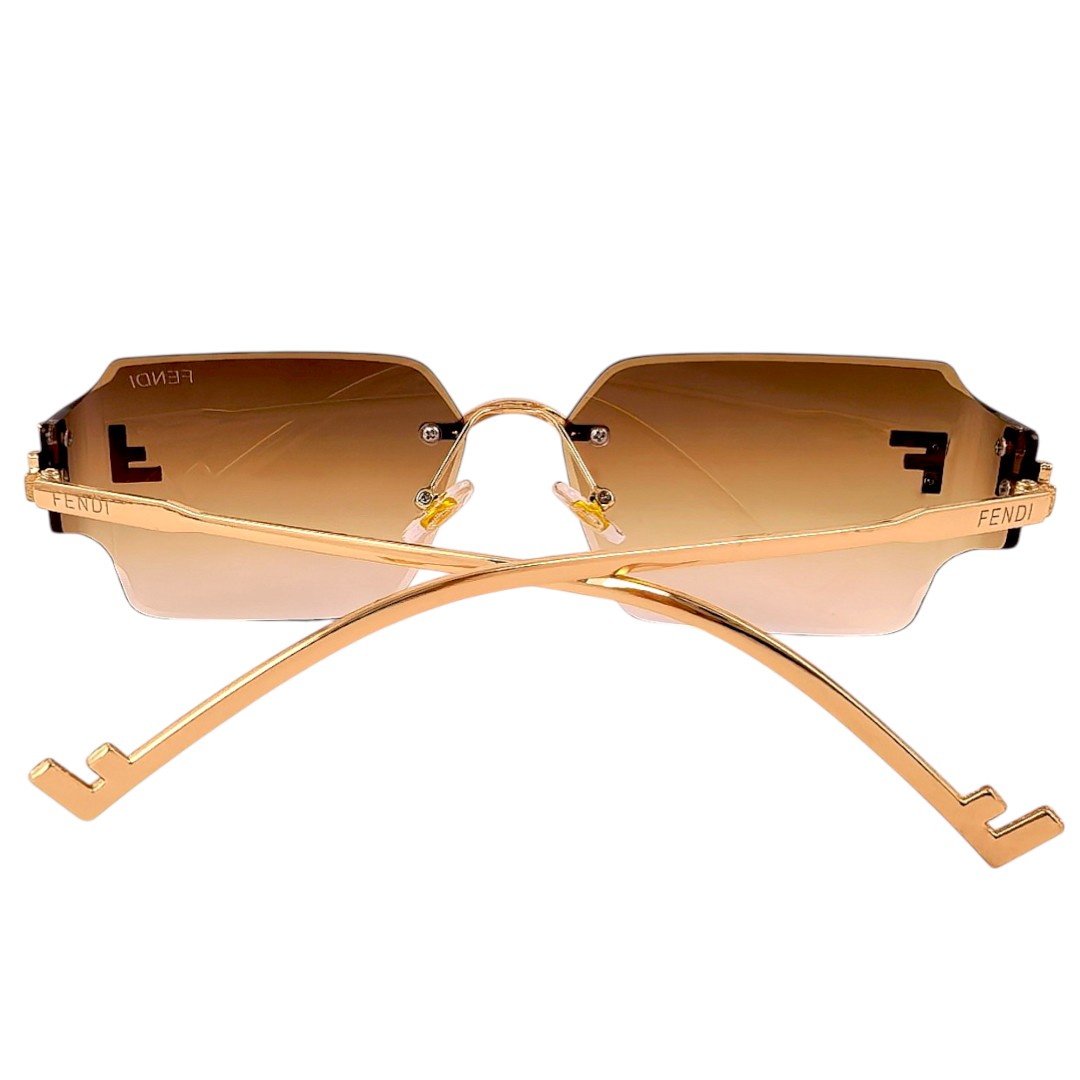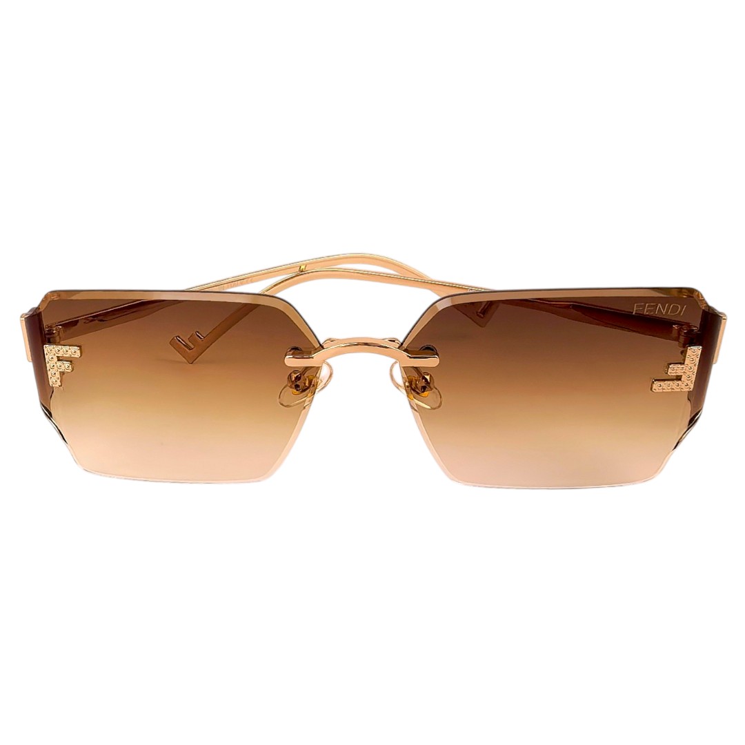 Дамските слънчеви очила Fendi колекция 2026 в златна рамка и кафяви преливащи стъкла са модел, който носи усещане за лукс още при първия поглед. Безрамковата конструкция създава чиста линия и подчертава лицето, без да го натоварва.