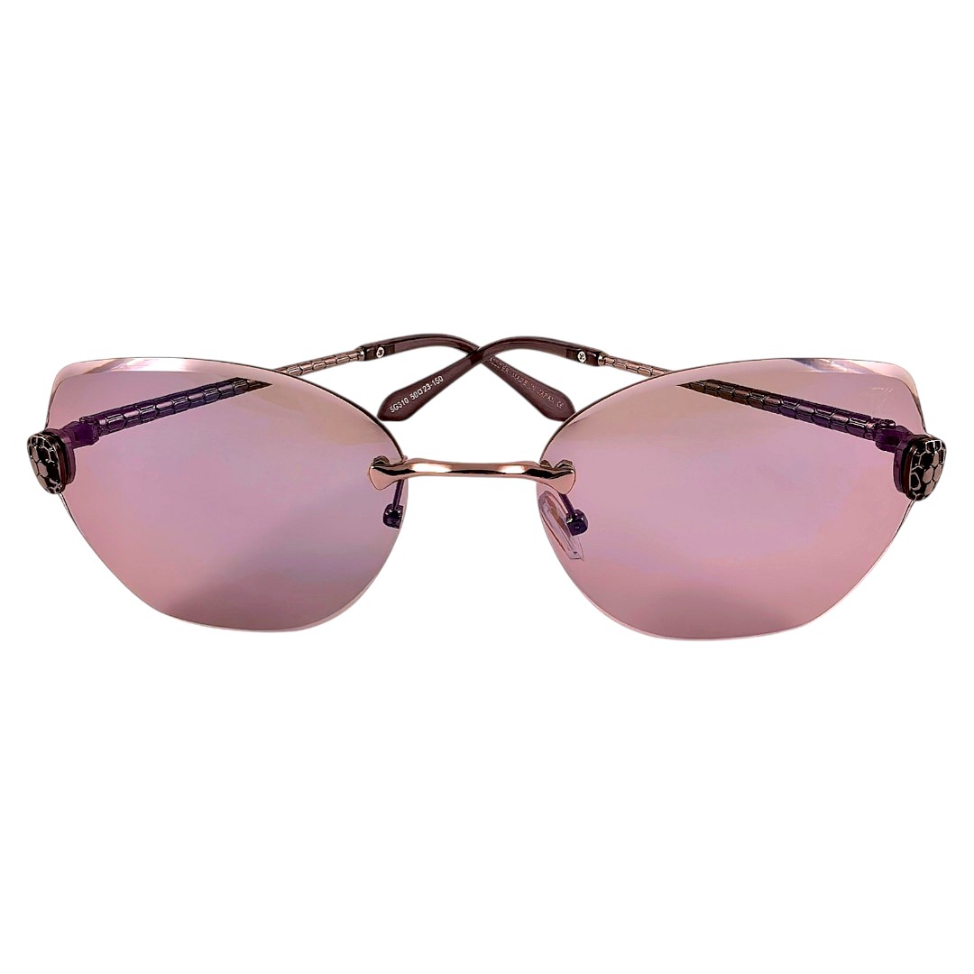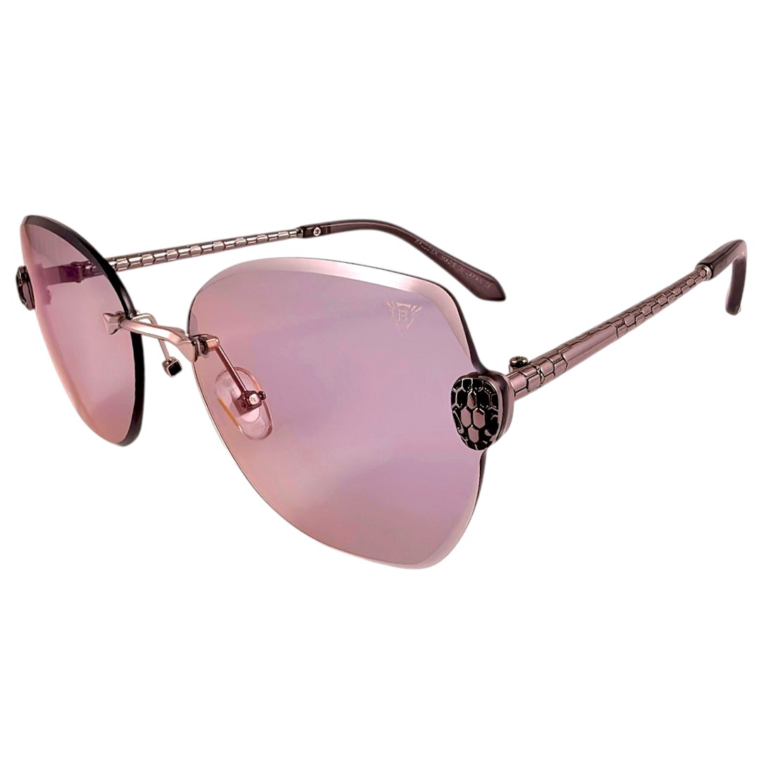 Хром рамката носи изчистен, луксозен и модерен завършек, а релефните дръжки с мотив, наподобяващ змийска кожа, добавят още повече характер към модела. Синьо-лилавите стъкла създават силен визуален акцент и правят очилата много подходящи за дами, които търсят по-забележим и по-специален модел. Комбинацията между пеперудена форма, хромирани детайли и преливащи стъкла прави този модел подходящ за ежедневни визии, разходки, почивка, градска среда и по-открояващо се присъствие.