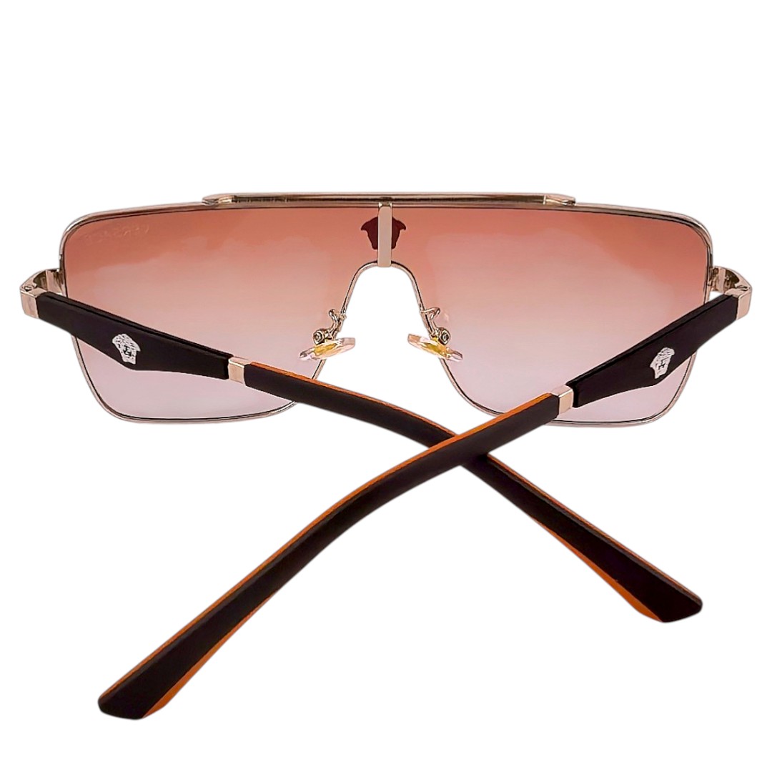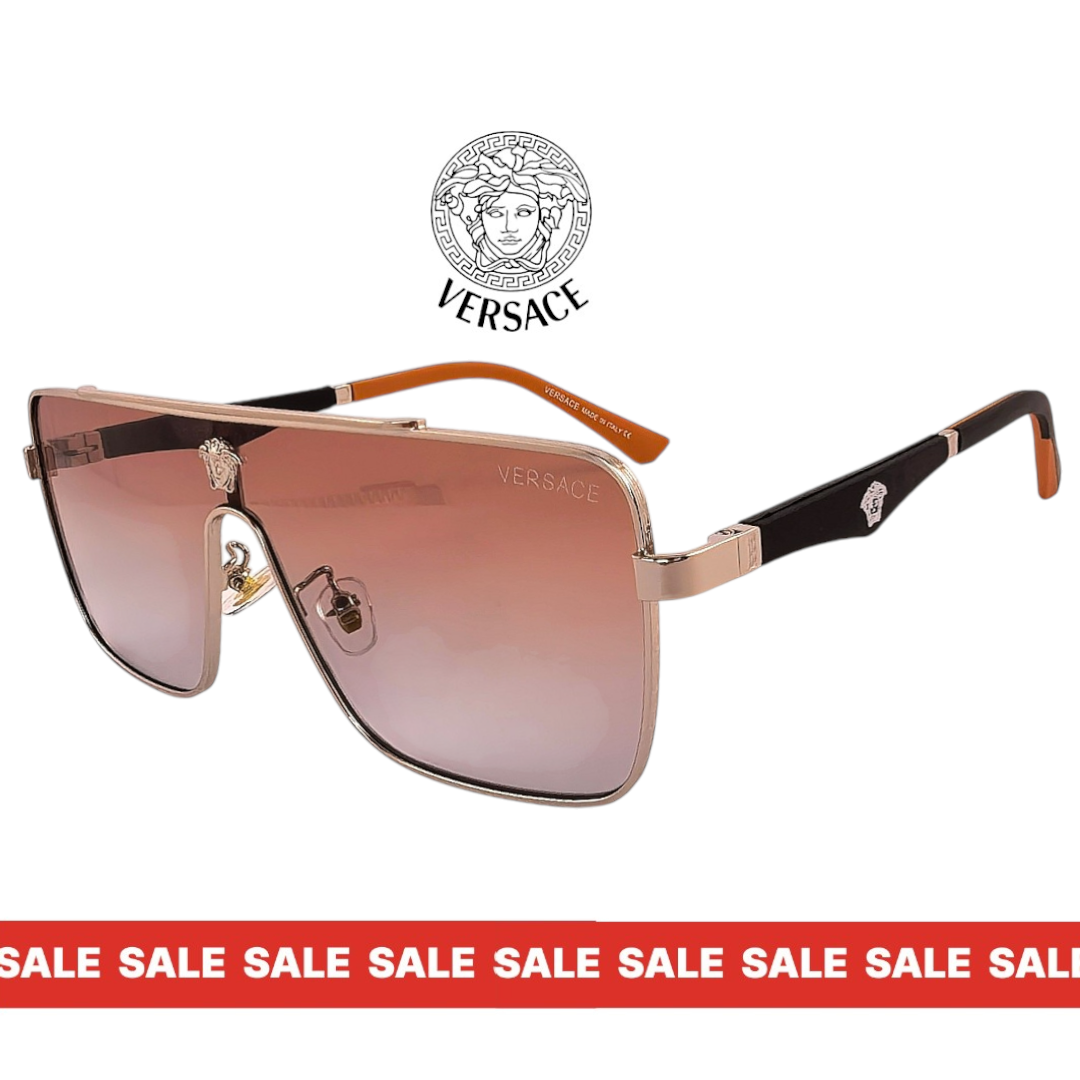 Слънчеви очила Versace колекция 2026 със златна метална рамка и светли преливащи стъкла. Унисекс модел с модерна, изчистена линия и ясно разпознаваем силует.
