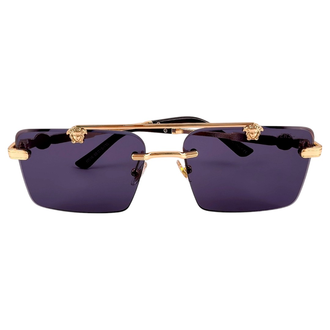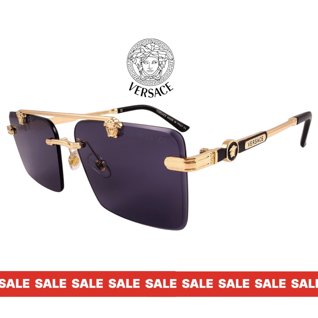 Златната конструкция подчертава линиите на модела, а черните стъкла създават изразителен контраст и осигуряват надеждна UV400 защита при силна слънчева светлина. Дръжките са стабилни, с брандирани елементи Versace, които завършват визията с разпознаваем детайл.